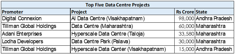 By contrast, Miscellaneous Services, where data centre projects are included, rose nearly sixfold to Rs 3,08,650.50 crore, lifting its share from 1.17 percent to 5.30 percent, though this category was almost entirely driven by mega projects, with a mega share of 99.19 percent. During FY2026, around 54 data centres projects entailing a total investment of Rs 3,08,000 crore were announced. Some of the larger projects were the following: